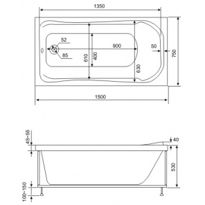 Прямоугольная акриловая ванна BAS Бриз 150х75 см